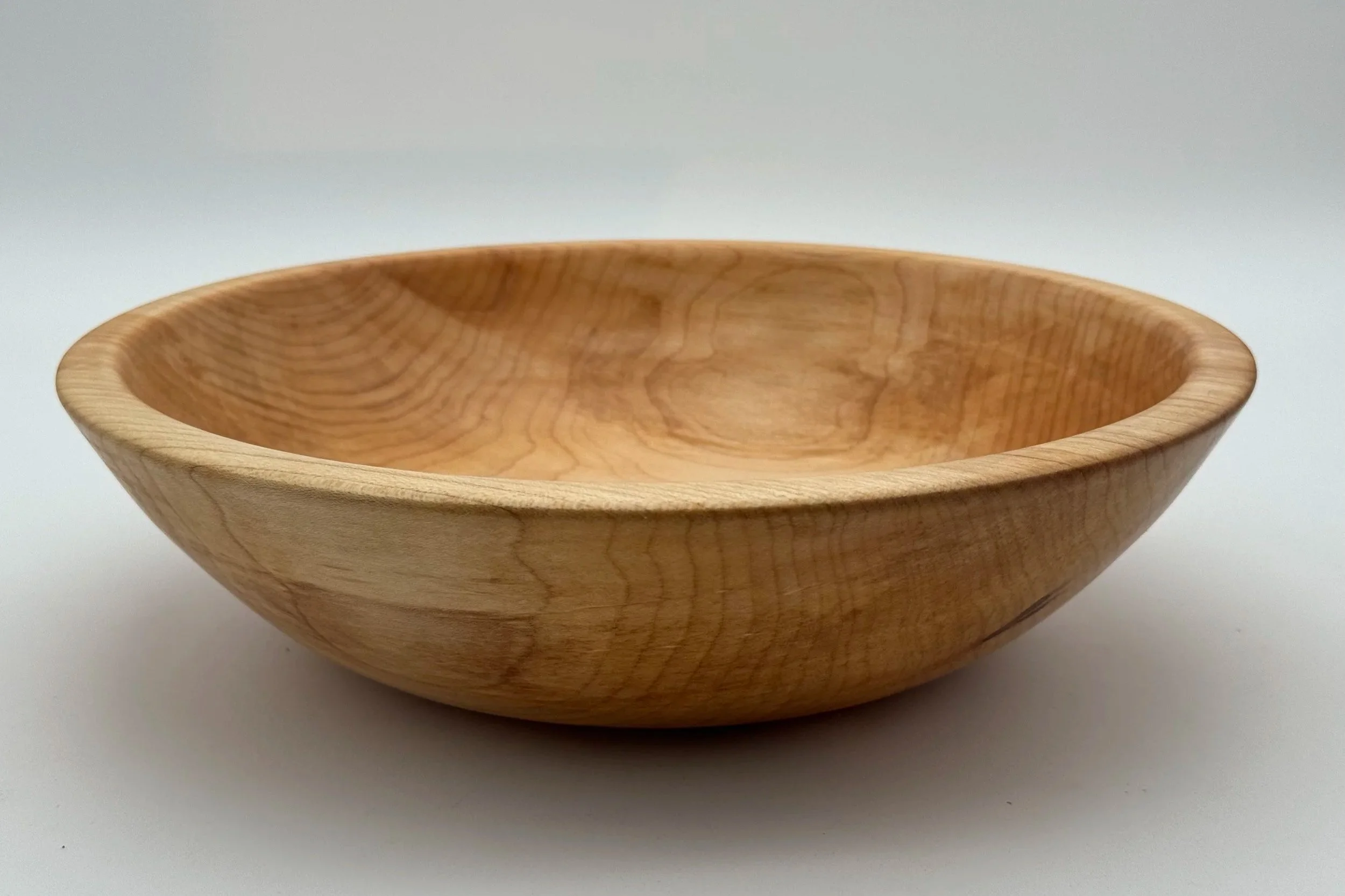 Large clear maple wooden bowl on a white background